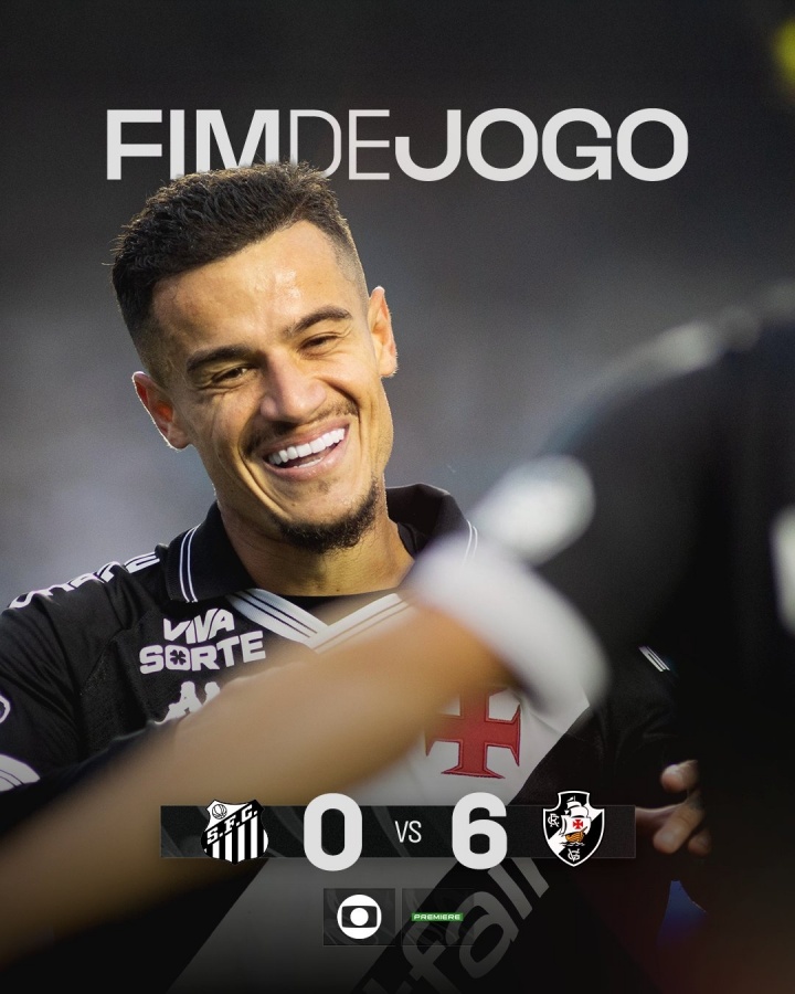 08月18日讯 巴甲第20轮,桑托斯主场0-6惨败给瓦斯科达伽马,库蒂尼奥梅开二度,内马尔哑火。